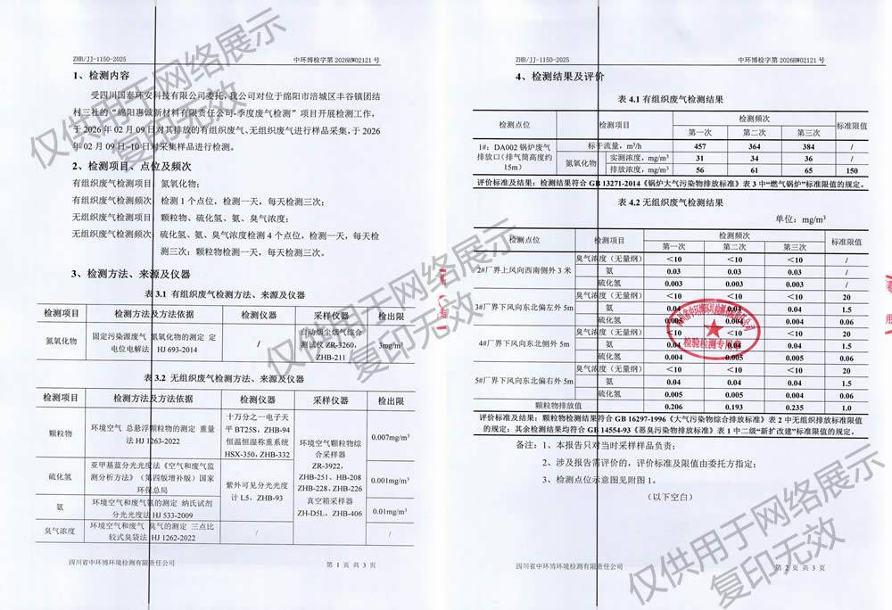 2026年第一季度自行监测情况公示